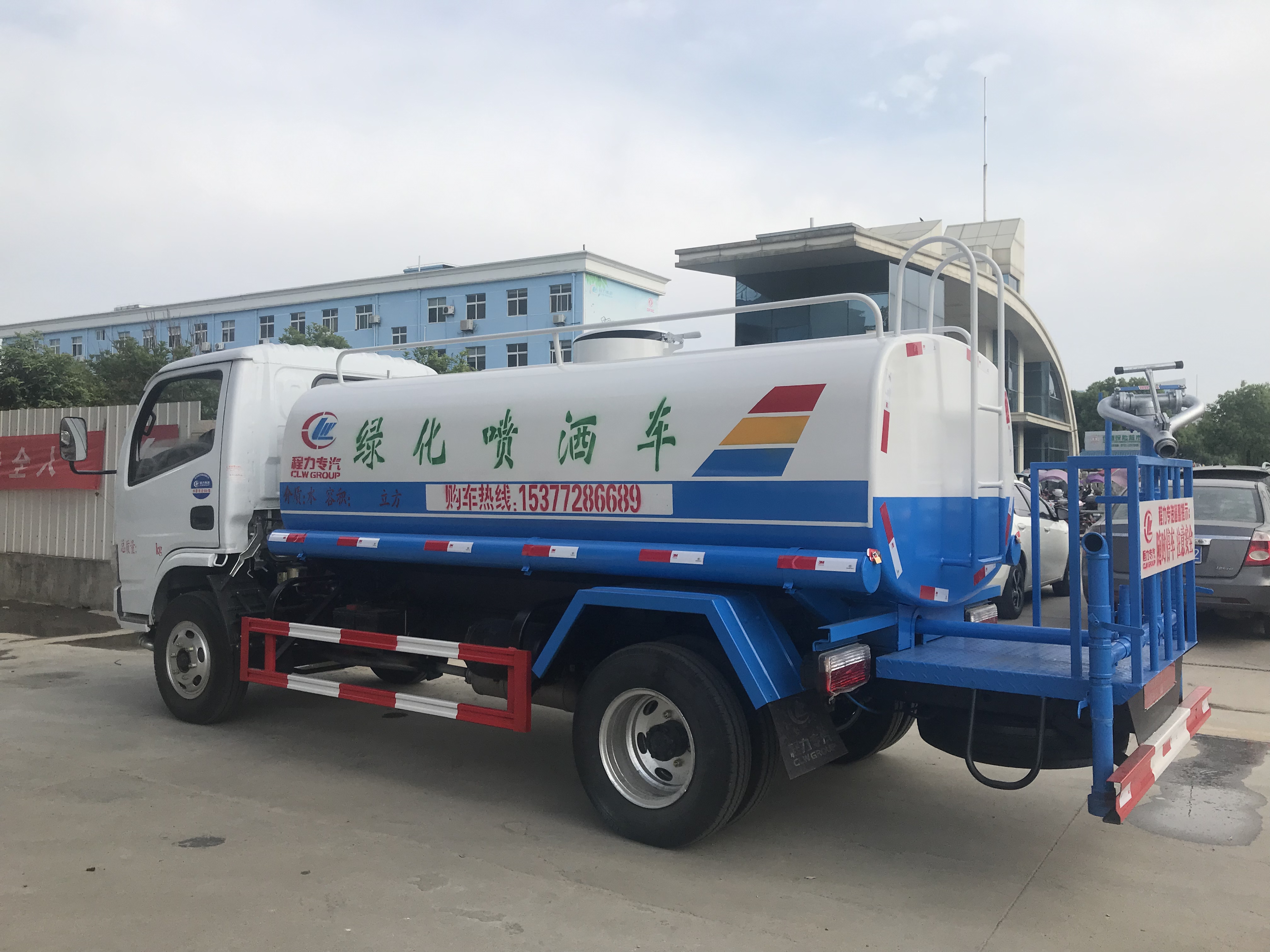 東風(fēng)5噸灑水車采用東風(fēng)多利卡底盤,白色可前翻駕駛室,朝柴102馬力國(guó)五發(fā)動(dòng)機(jī),5檔變速箱,軸距3308mm,1.8噸前橋,3.5噸后橋,7.00R16原廠鋼絲胎,原廠abs,帶方向助力,離合助力器,氣剎制動(dòng)。