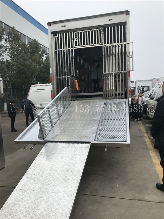雛禽運輸車(豬苗運輸車)是在廂式車柵欄豬仔運輸車廠家_拉豬仔運輸車購車底盤的基礎(chǔ)上,選用優(yōu)質(zhì)、高強度材料,采用行的分塊拼裝工藝加工而成。尾門可向下打開,當(dāng)作爬梯用,讓小豬仔走進車廂內(nèi),分為三層到四層,自動升降,一層裝滿后升上去接著裝下一層。