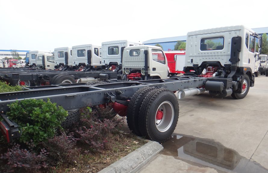 采用東風(fēng)多利卡D9系列底盤,平頂駕駛室,駕駛室原廠空調(diào),康明斯180馬力發(fā)動(dòng)機(jī),6檔變速箱,軸距5600mm,9.00R20原廠鋼絲胎,斷氣剎,原廠ABS。