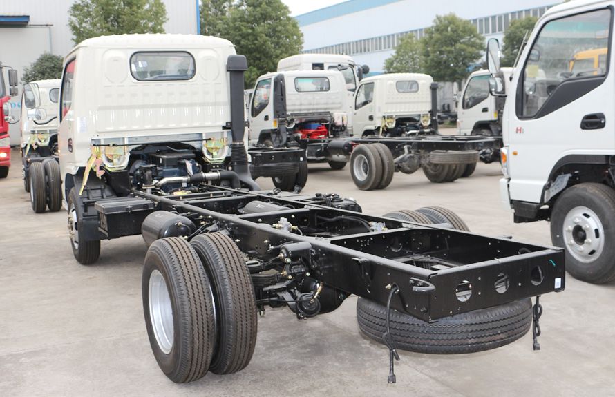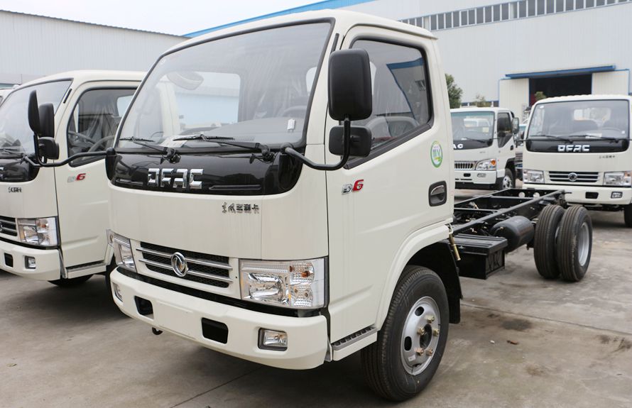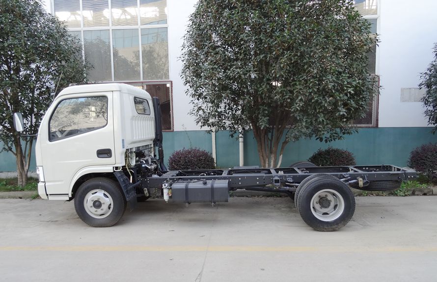 采用東風(fēng)多利卡底盤,單排駕駛室可前翻,朝柴102馬力發(fā)動機,5檔變速箱,軸距3300m,7.00-15原廠尼輪胎,帶方向助力,離合助力器,汽剎制動。