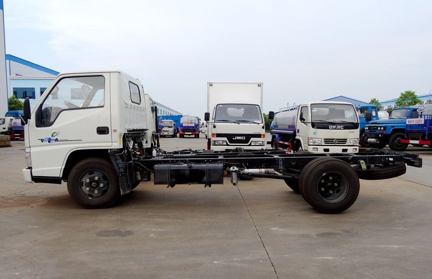 采用江鈴底盤,單排駕駛室可前翻,江西五十鈴115馬力發(fā)動機,5檔變速箱,軸距3360mm,7.00R16鋼絲胎,帶方向助力,離合助力器,油剎制動。