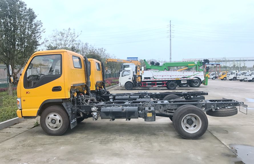 采用江淮3308mm底盤,新款單排寬體駕駛室,朝柴117馬力發(fā)動(dòng)機(jī),5檔變速箱,軸距3308mm,1.5噸前橋,3噸后橋,6.50R16鋼絲胎,帶原廠尿素罐,原廠ABS,帶方向助力,離合助力器,汽剎制動(dòng)。