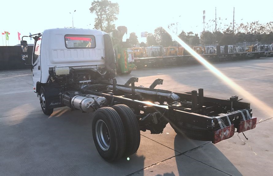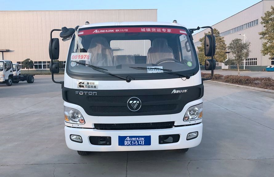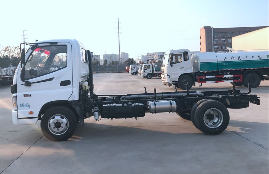采用福田歐馬可底盤,新款單排寬體駕駛室,康明斯130馬力/141馬力發(fā)動機,5檔變速箱,軸距3360mm,4.5噸整體式后橋,7.00R16鋼絲胎,原廠尿素罐,原廠ABS,帶動力轉(zhuǎn)向,空調(diào),定速巡航,中控鎖,電動門窗,離合助力器,汽剎制動。